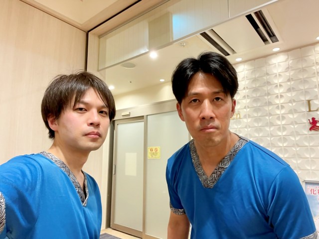 しばらくすると、砂子間から「自分も風呂から出た」という連絡が。ロッカーの外で夜以来の再会を果たした。