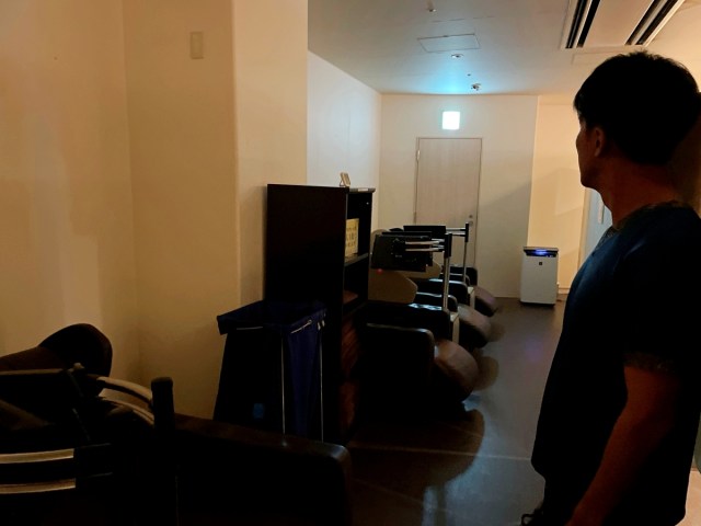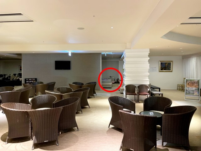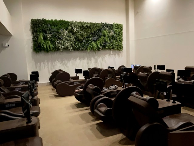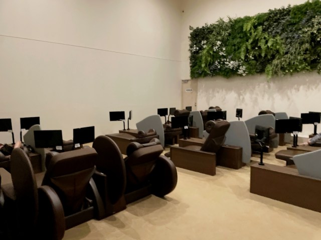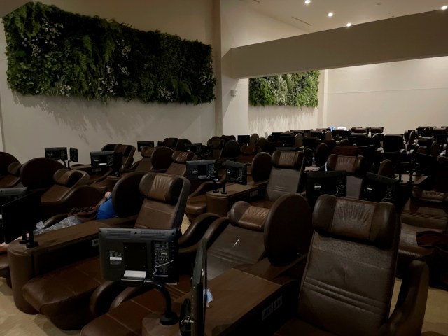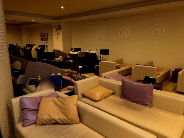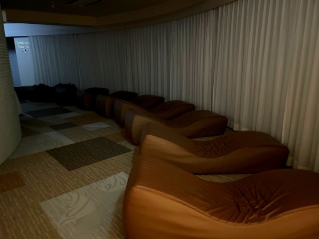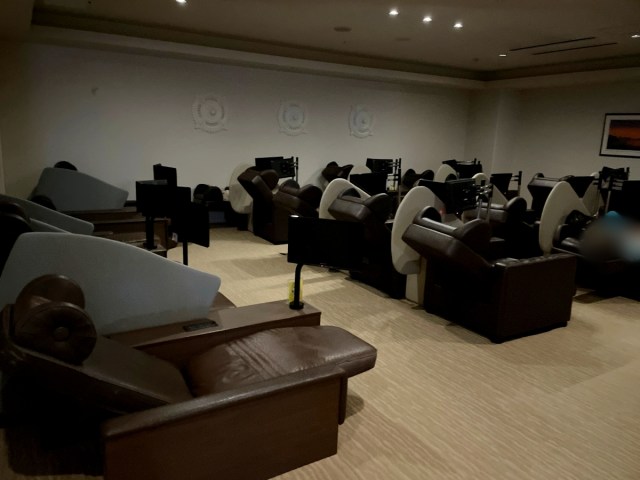 地下2階に行ってみると、どうやらここが一番広いラウンジらしい。4階にもあったリクライニングチェアがずらっと大量に並んでいる。