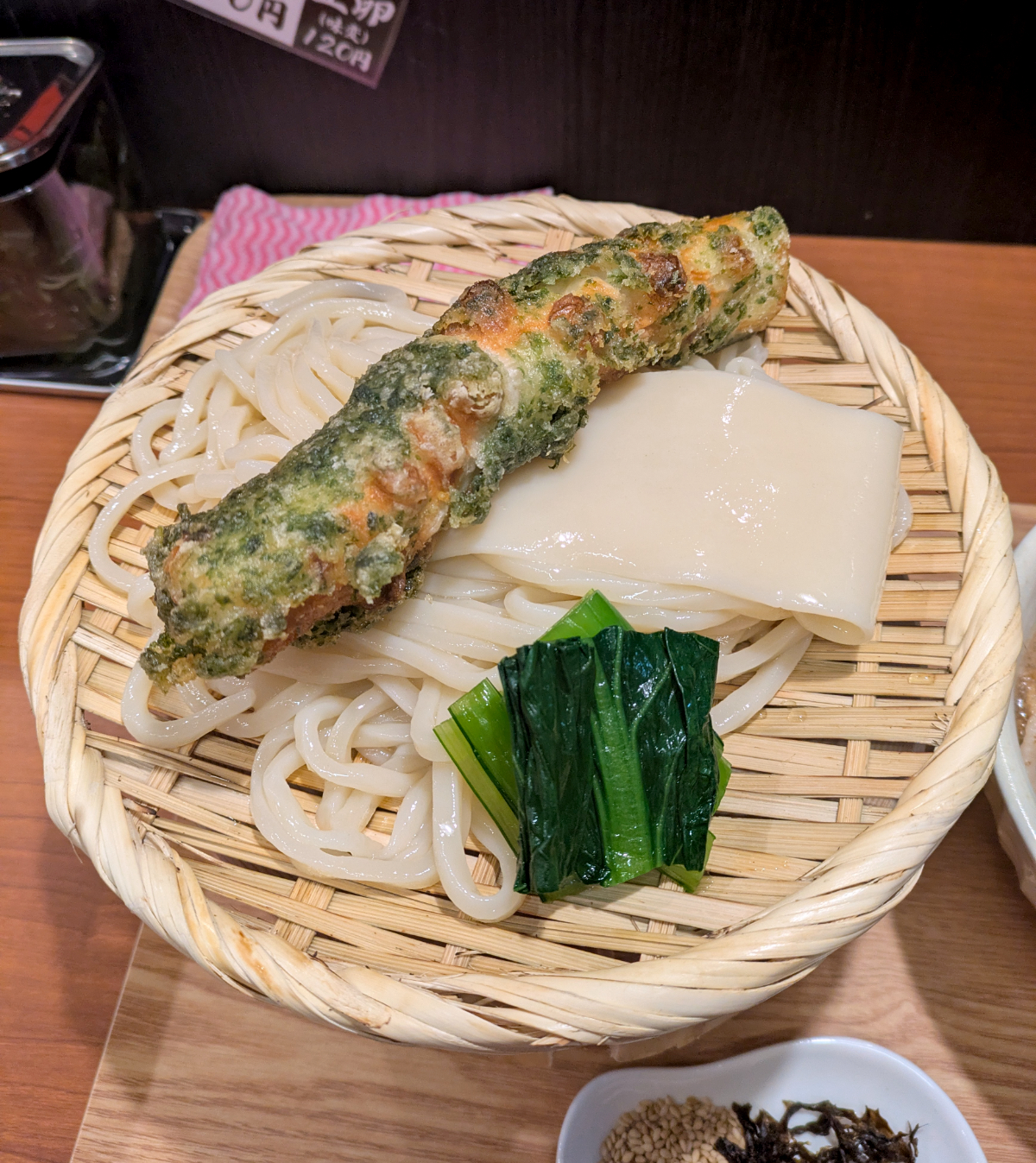 ネギとワカメが無料となっている。提供時、つけ汁にこれらは入っていないので、お好みで加えると良いだろう。