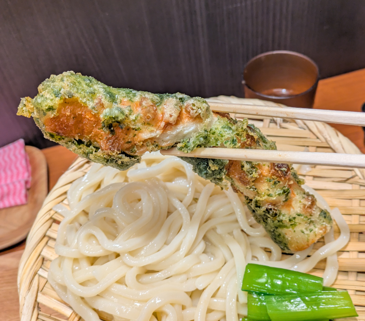 意外と侮れなかったのがちくわ天だ。衣はしっかり揚がっていて、柔らかなうどんとの食感のコントラストが生きている。ちくわでこの美味しさということは、かしわ天や海老天も試したくなる仕上がりだ。