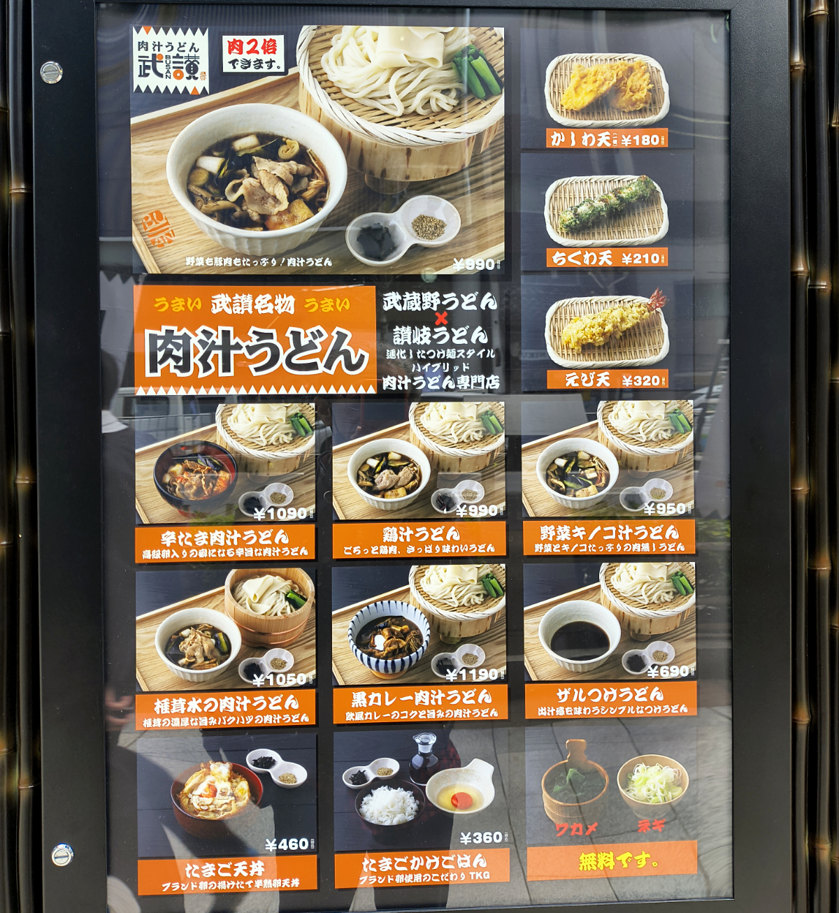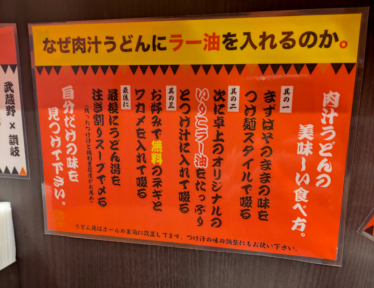 「武讃」とは “武” 蔵野うどんと “讃” 岐うどんを掛け合わせていることから、それぞれ1文字とって「武讃」としたようだ。さすが株式会社のみものだ。やっぱりただの肉汁うどんの店じゃなかった。