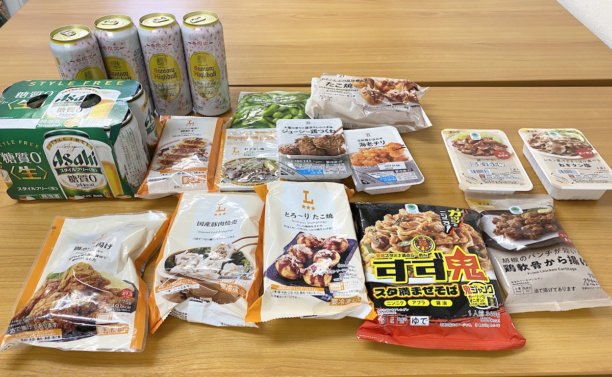 古沢記者には「PBの商品でレンチンだけで食べられるなら何でも買っていいぞ」と伝え、最後にアルコールを買って宴の準備は完了。なお、コンビニをハシゴして購入したのは以下の通りだ。