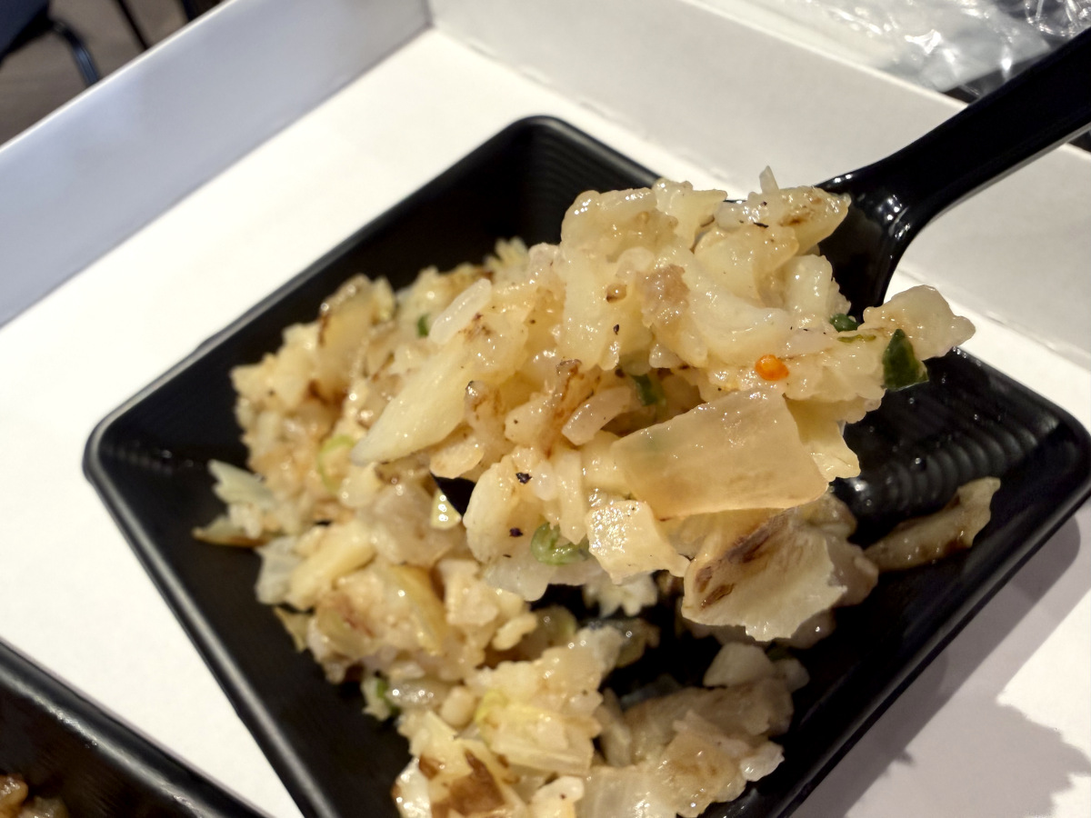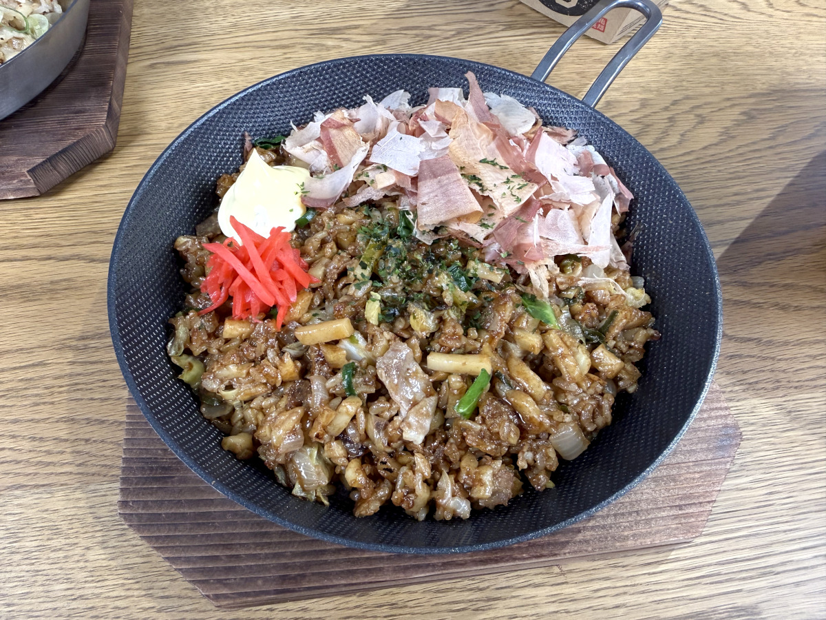特徴的なのはそばめしよりも米とうどんの一体感があり、全体的にモチモチとした食感であること。そばめしと限りなく近い料理ではあるものの、食感に関してはそれなりに違う。