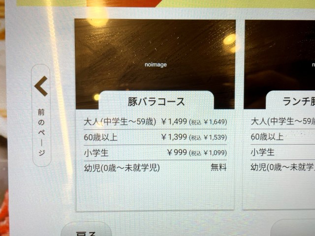 お昼すぎに入店。席に着いてタッチパネルを確認してみると、予想外の事態が起きていた。なんとランチの『豚バラコース』がまだ注文できるではないか。