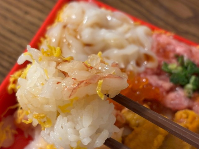 ただ「5種類のってますよ」という見せかけではなく、ちゃんと全員に役割がある、まるで5レンジャーのような海鮮丼だったのである。