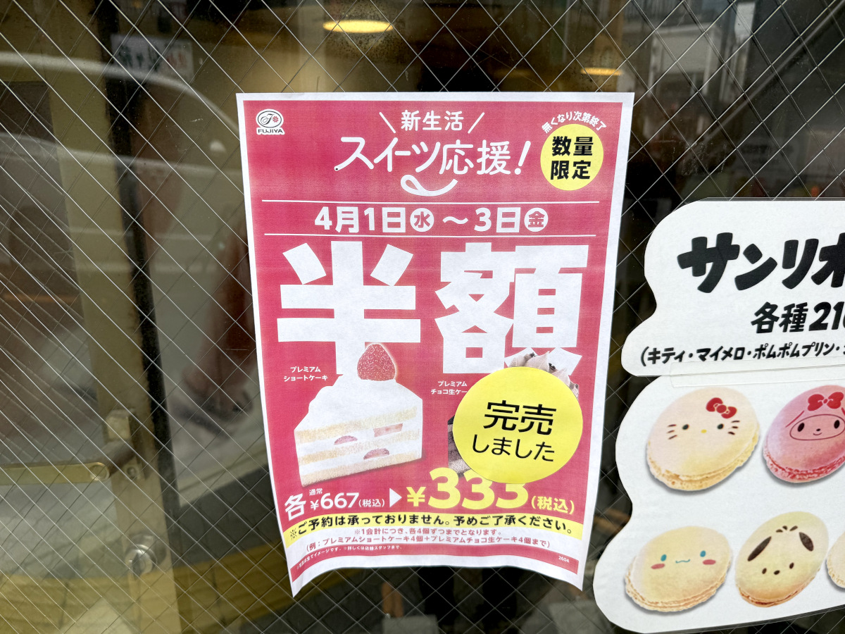 なんでも2026年4月1日~3日まで、不二家のショートケーキが半額になっているそうだ。最近あまり都心部では見かけないが、それでも「ケーキと言えば不二家世代」の方も多いことだろう。