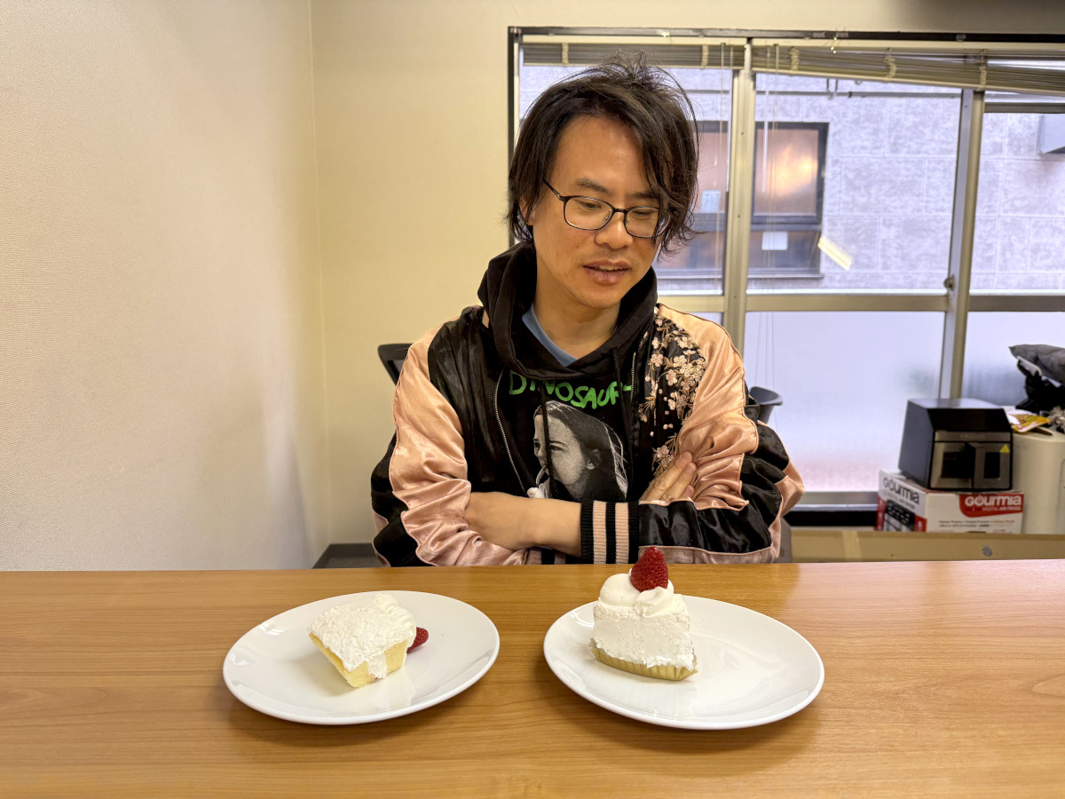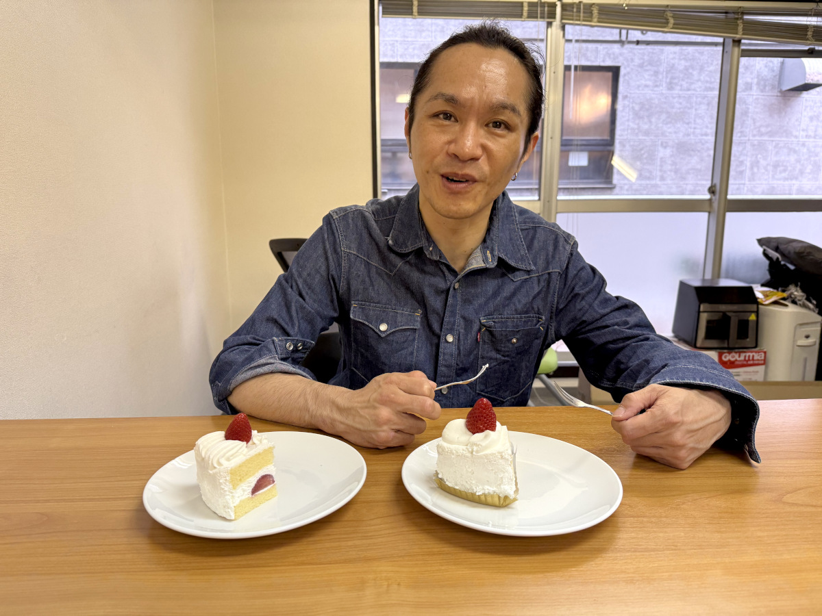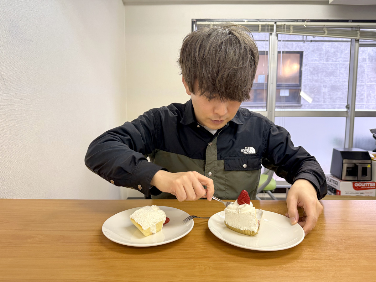 というわけで、不二家とシャトレーゼでショートケーキを1つずつ購入し、食べ比べてみることに。その際、私1人だと心もとないので事務所にいた3名にも協力を仰いだ。