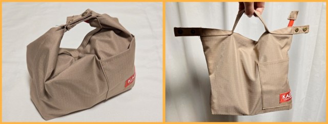 ▼そのままでも持てるし、上部をくるっと丸めて変形もできます