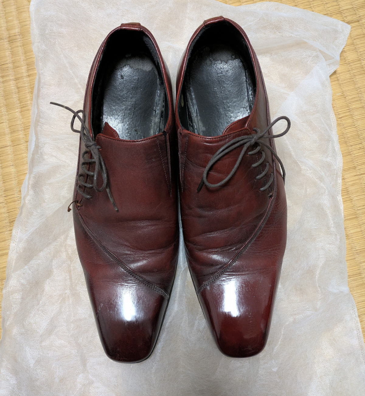 そうして、仕事帰りに磨き終わった革靴を受け取って帰宅した。さあ、どうなったかな? 輝きは戻ったか?