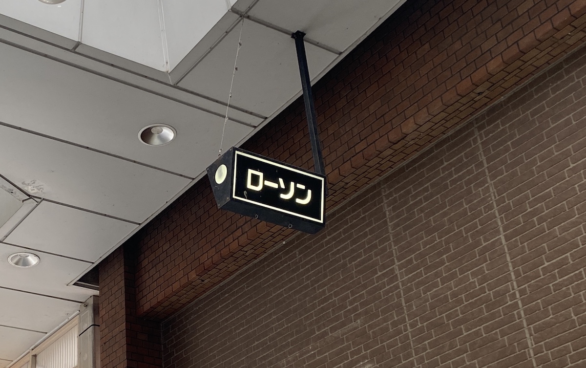 しかも、天井から吊るされている看板もエモさ全開。「ローソン」とカタカナ表記になっているのも、なんだか昭和〜平成っぽさが残っていて風情を感じる。