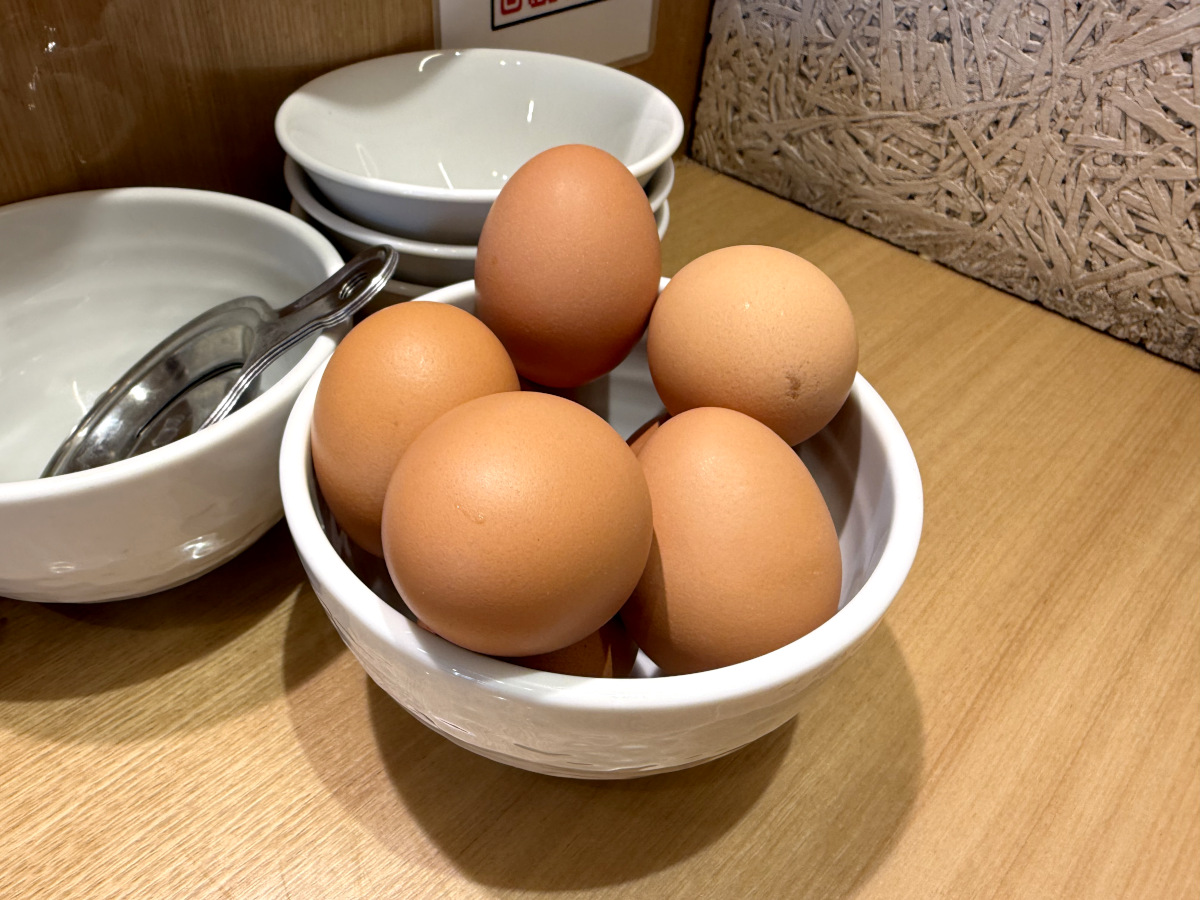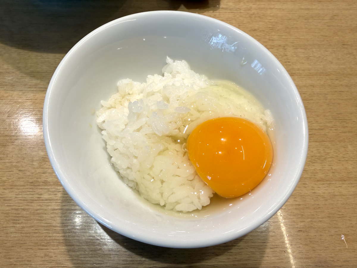 ▼ご飯と生卵食べ放題はデカい。あとはご飯の器がもう少し大きければなぁ~。