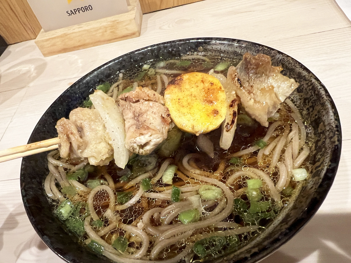 そばはお箸で食べるから、普通はトッピングもお箸で食べられるものだ。しかし、串はお箸を使わないから、そばと合わさると正しい食べ方が分からなくなるのである。