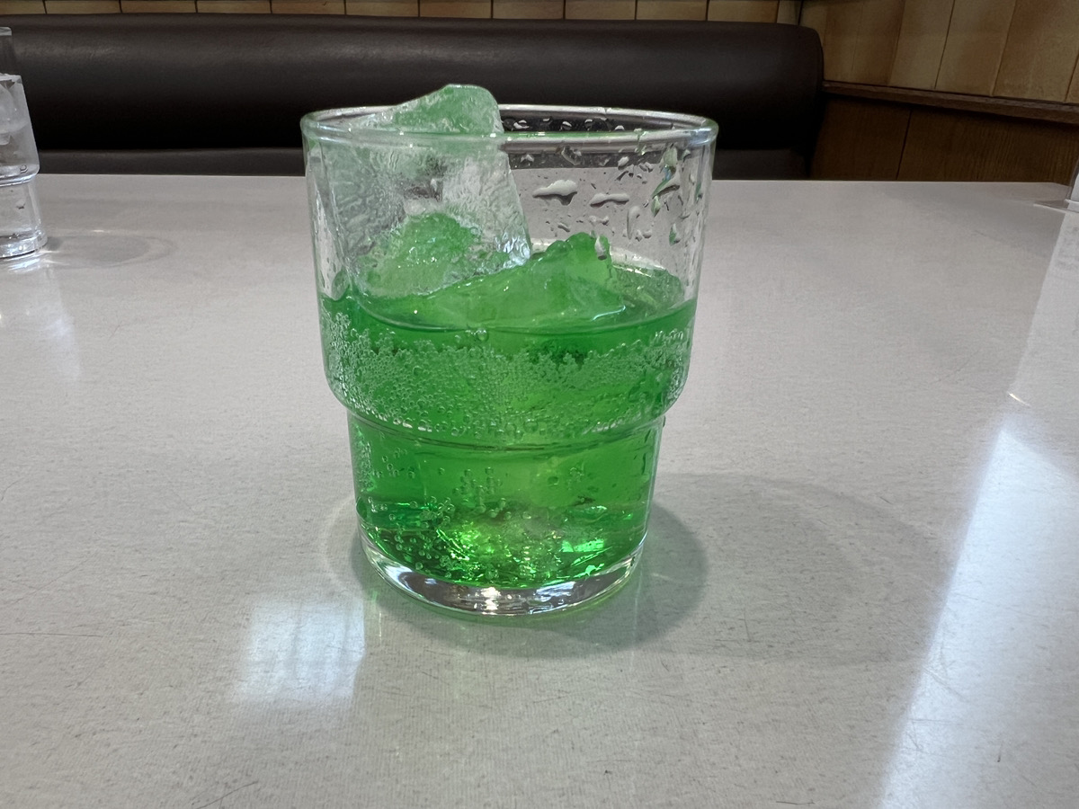 しかも、入ってみると、水みたいなノリでメロンソーダが出てきた。そのハイカラさはどこか純喫茶みもある。リバイバルじゃないリビングレトロな空気が染みるぜ。