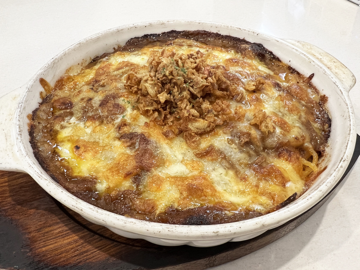 例えば、カレースパゲティ(税込913円)、焼きカレー(税込968円)、焼きカレースパゲティ(税込990円)など。試しに焼きカレースパゲティを注文してみたところ、ふんだんにチーズが使われていて、まるでカレードリアのキーマライスがスパゲティになったみたいな料理であった。