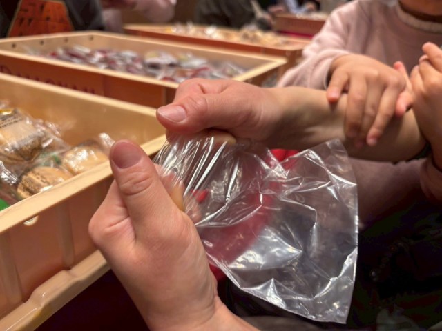 新しい袋をもらい、気を取り直して再び伸ばそうとしたところ、横にいた子どもが私の腕をつかんでこう言った。