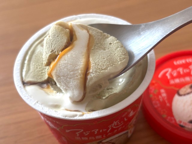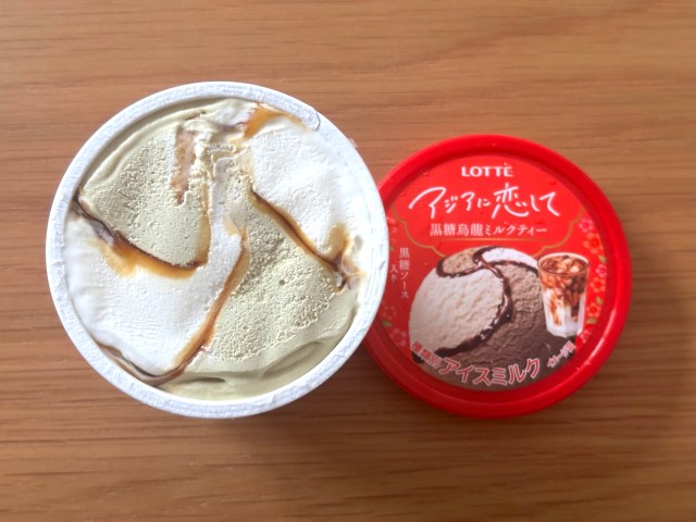 そしてお次は「黒糖烏龍ミルクティー」。鉄観音を使ったアイスと、ミルクアイス、そして黒糖ソースのハーモニーが味わえるみたい。