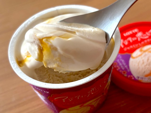 「アジアに恋して」は鳴り物入りで発売したってことは、定番としてずっと扱ってくれるってことですよね? これは再現度も高くて、かなりヒットの予感がします。ここ数年食べた新作アイスの中では、出色の出来!