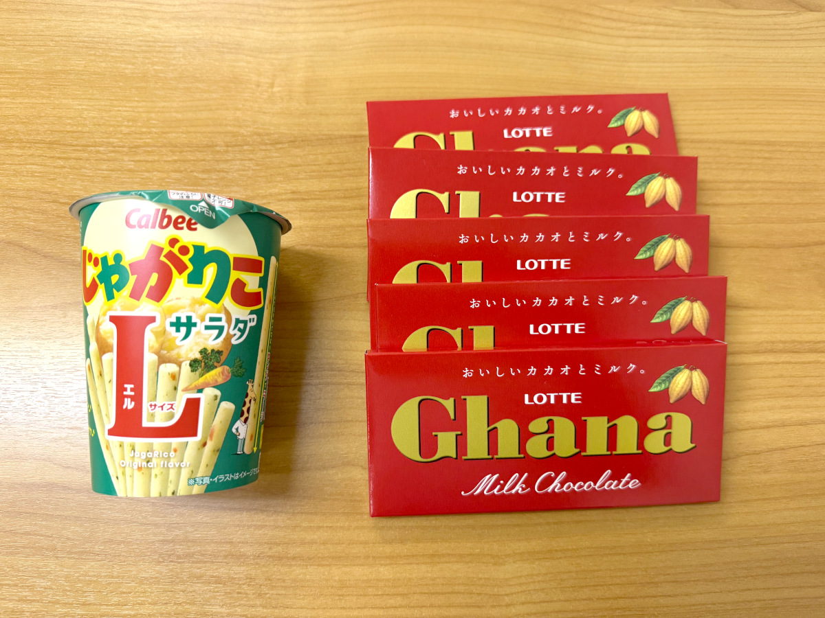 というわけで「じゃがりこ(今回は見栄えを考慮してLサイズ)」と「ガーナチョコ」を5枚購入。レーズンやナッツを入れるか迷ったが、ひとまず最もシンプルな『じゃがりこチョコ』を作ることにした。