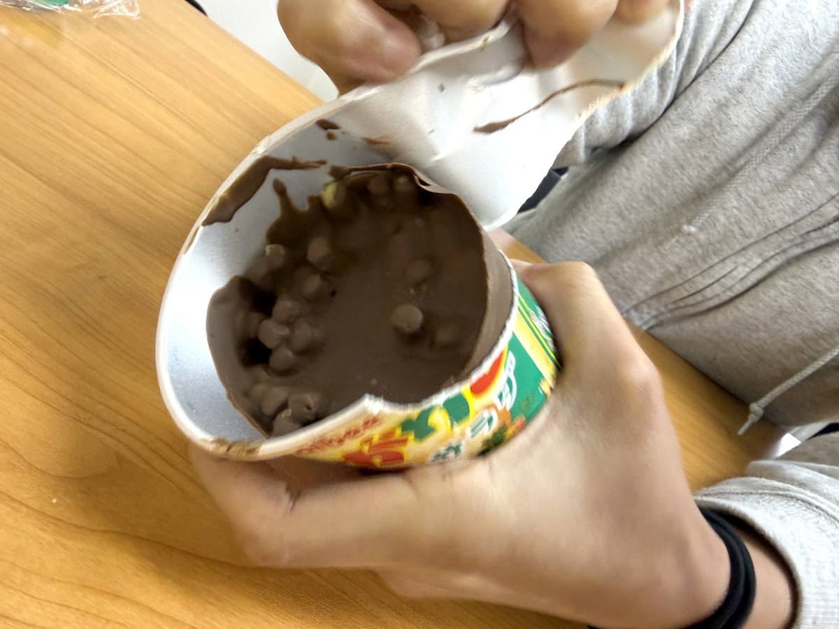 さっそく味見をしてみると、これが当然のようにウマい! じゃがりこの硬さのおかげで「超ハードクランキーチョコ」といった印象で、サクサクやザクザクを軽く超えた “ガリガリ食感” が最高や!!