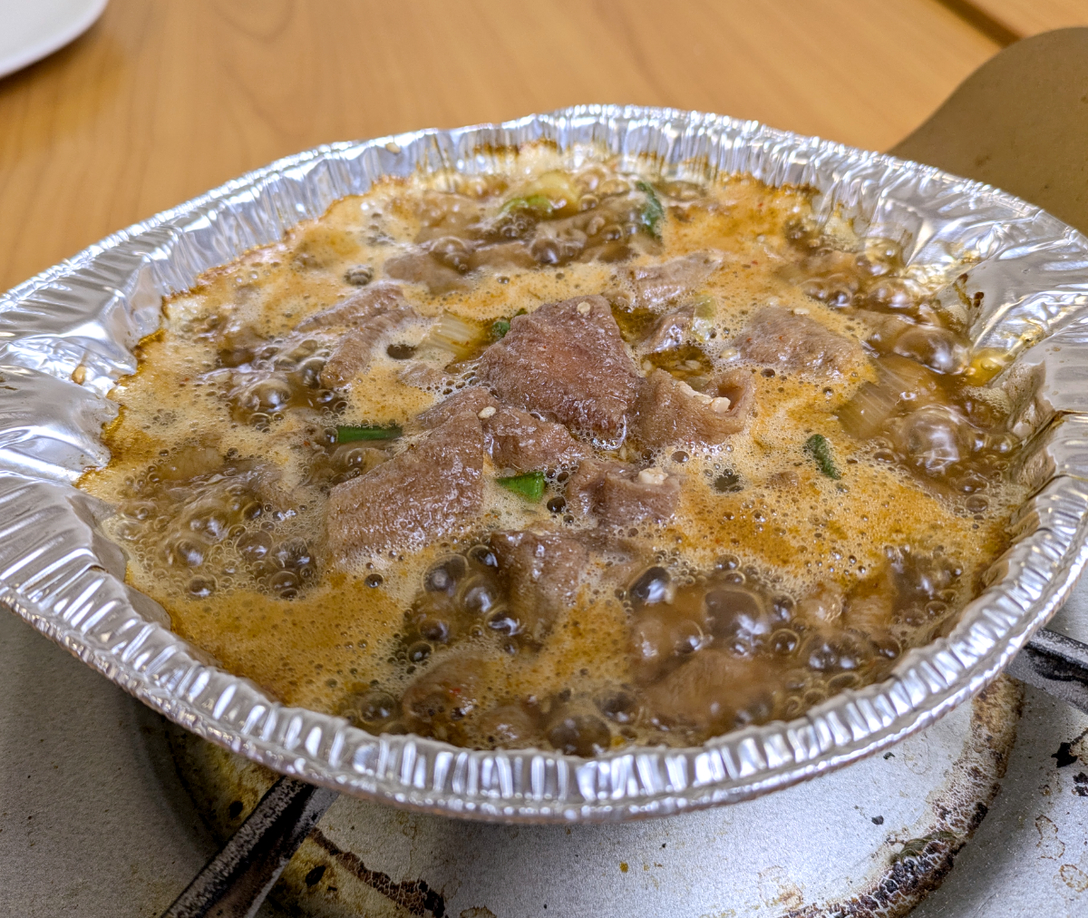 次第に加熱による気泡はデカくなり、フツフツとスープが沸き立ち始めた。
