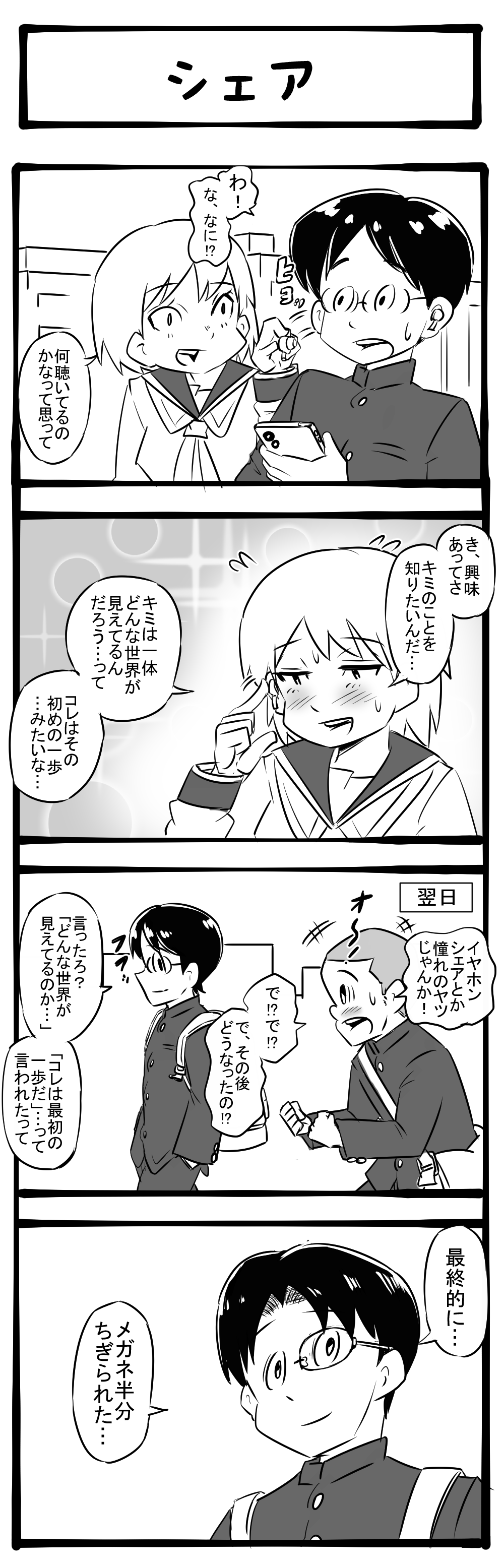 アナタのことが知りたいの! とことん半分こされた男子生徒! 四コマサボタージュBYD第339回「シェア」