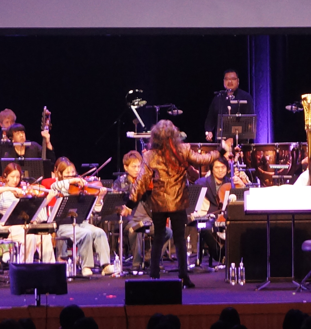 クリックを使用してるとはいえ映像とピッタリ同期させる超一流スタジオミュージシャンたちの演奏! それゆえ、鷺巣詩郎さんはポジション的には指揮者だけど、動きが自由だ。っていうか……