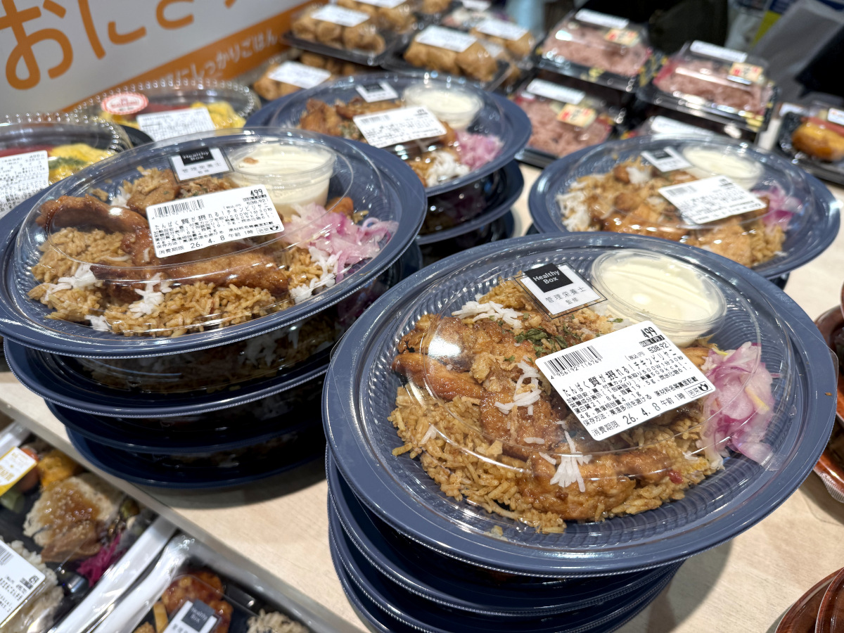 ヘルシーボックスは「600kcal以内」「5色彩り豊か」「栄養価でバランス」を掲げており、ビリヤニの他には「20品目が摂れる黄金生姜の玄米ごはん弁当(495円)」と「鶏と野菜のこだわり黒酢あん弁当(538円)」がある。