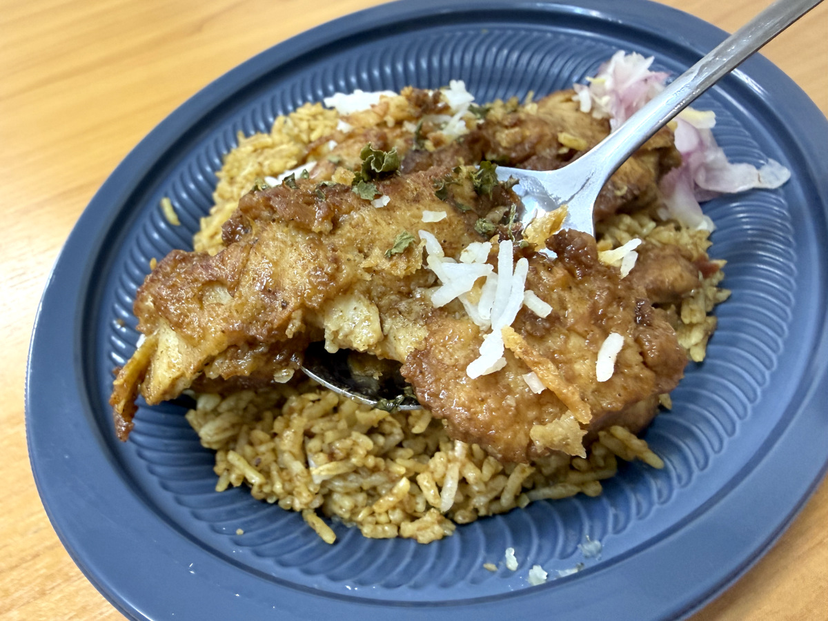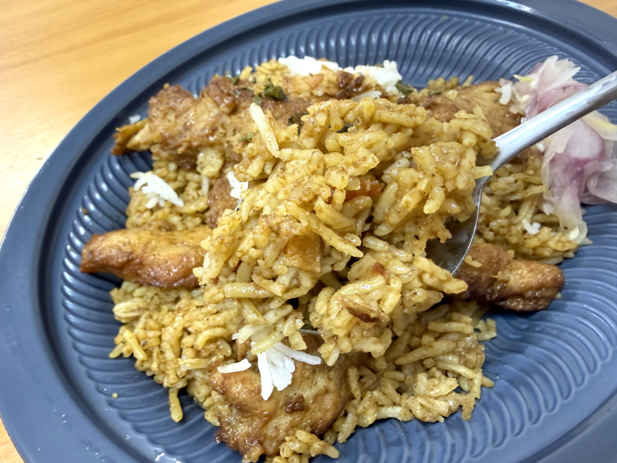 で、お味はというと……正直、かなりウマい。「人生最高のビリヤニ!」とまでは言わないものの、スパイスの香りが豊かな美味しいビリヤニだ。おそらくこれを食べて「美味しくない」という人は、ビリヤニ自体が向いていないのだろう。