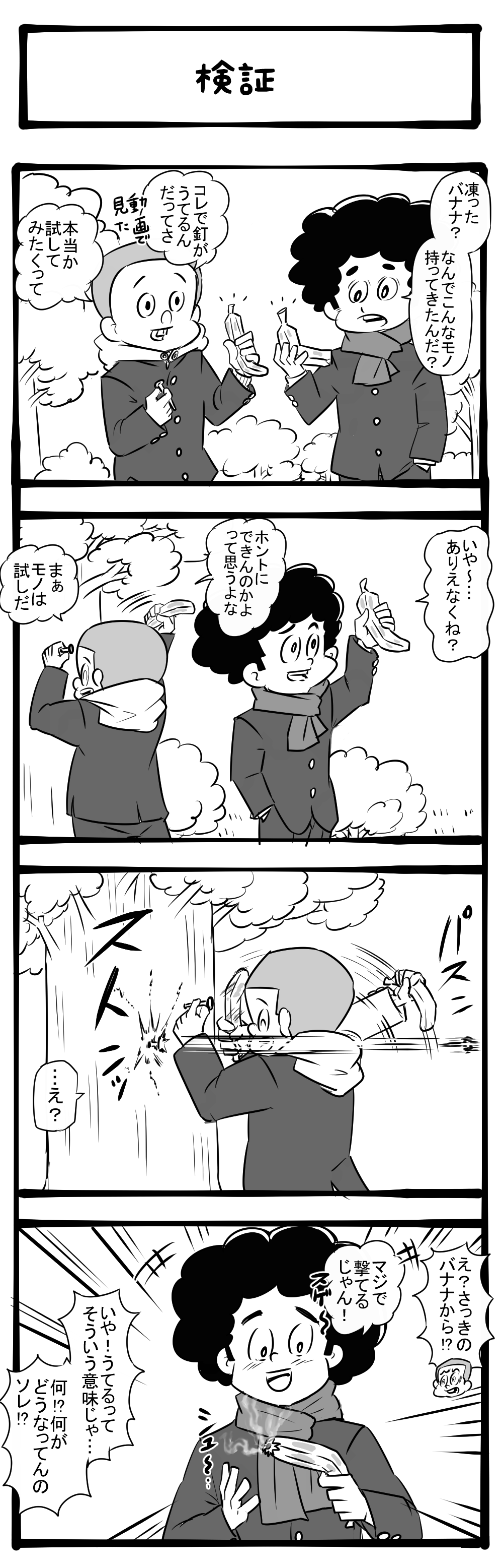 どこ産だよ! 凶器になり得る凍ったバナナ! 四コマサボタージュBYD第340回「検証」