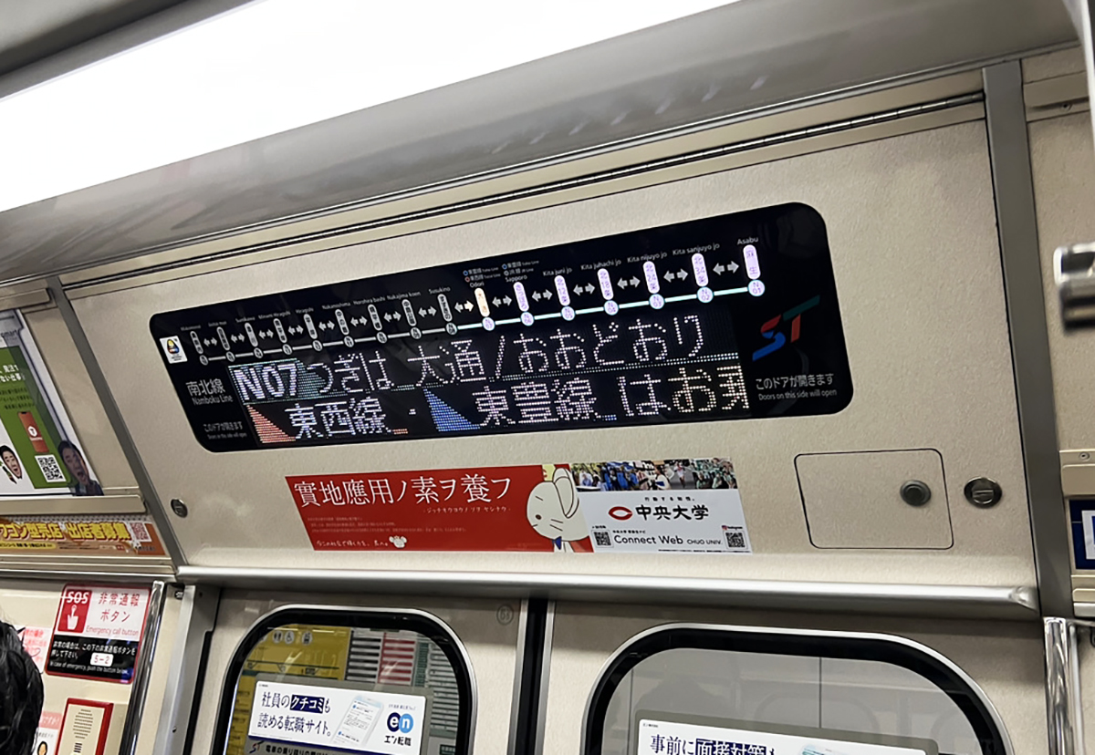 と諦めていたのだが、先日、札幌市営地下鉄に乗ったところ感動した。車内案内のディスプレイがめちゃくちゃ分かりやすかったのである。