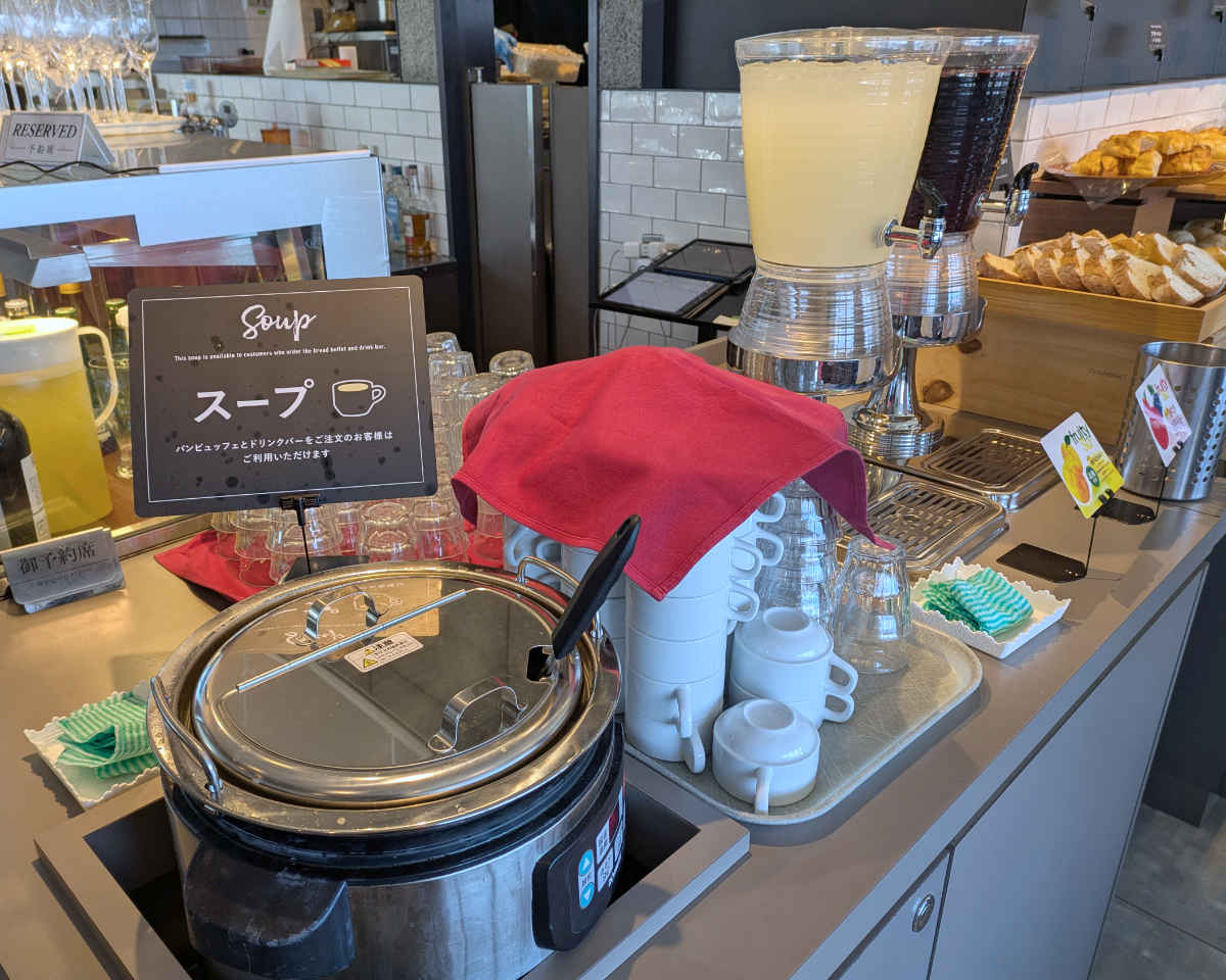 そしてドリンクバーにはスープバーもついていて、リンゴ酢も飲み放題。