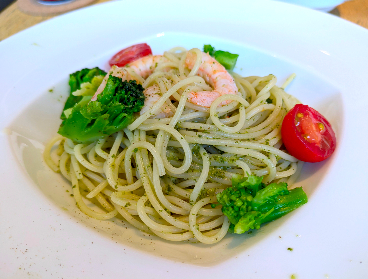 頼んだのは「海老とブロッコリーのジェノベーゼ」。本来であればメインディッシュなのだが、これはまあ後で良いか。私の中での今日のメインはパンだ。