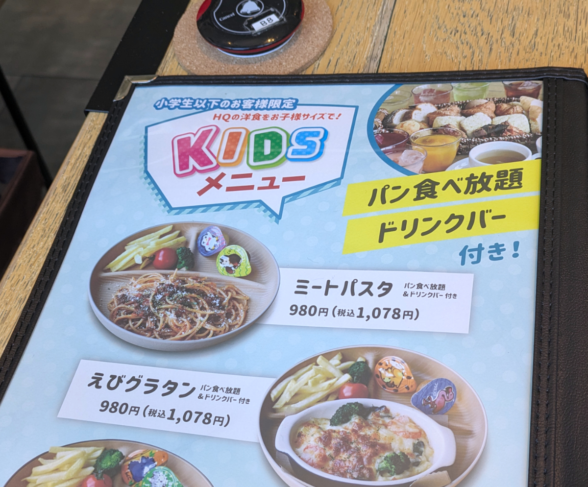 また小学生以下限定のキッズメニューは、料理注文でパンビュッフェ・ドリンクバーの両方がついてくる。パパママには助かるサービスではないだろうか。