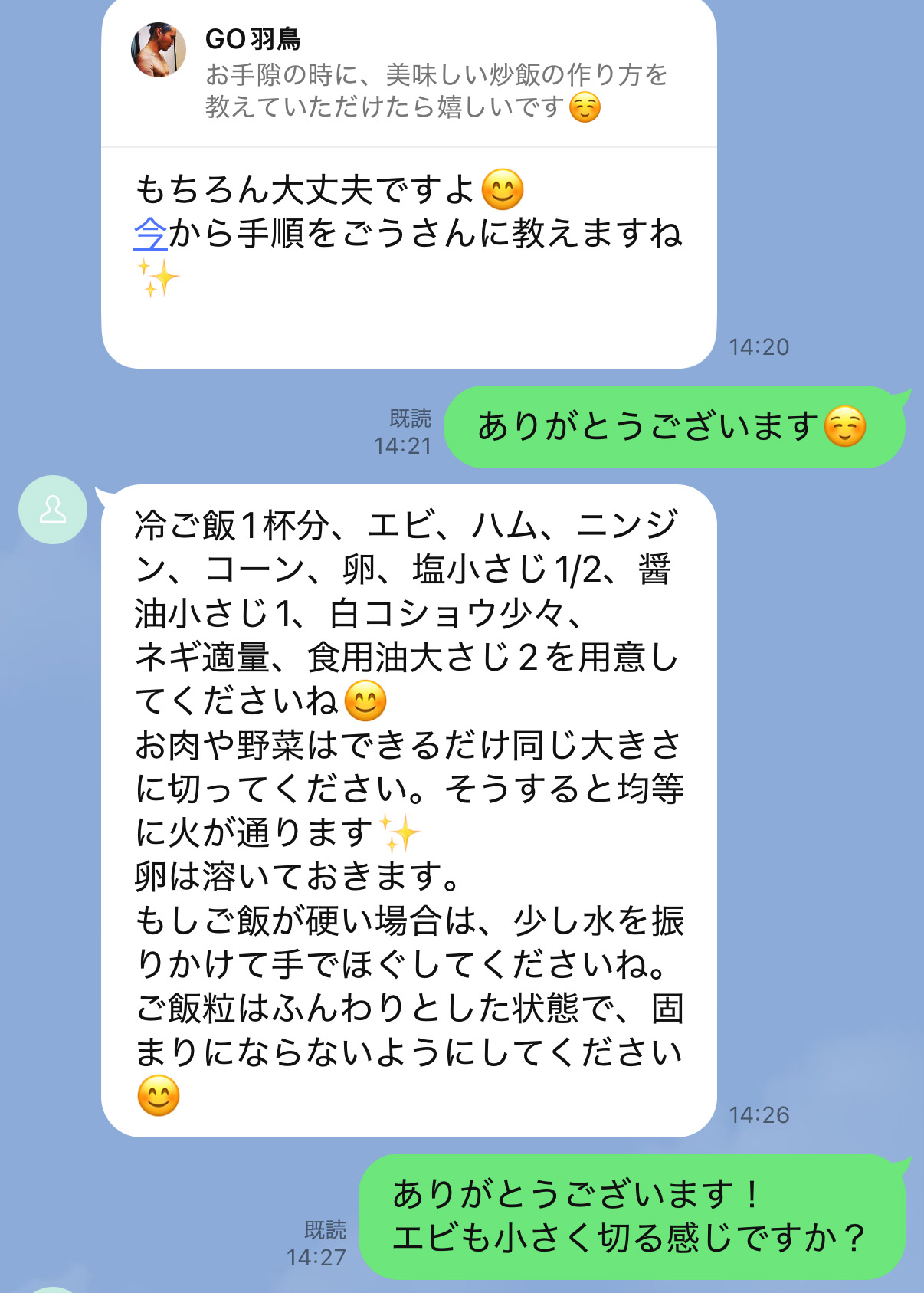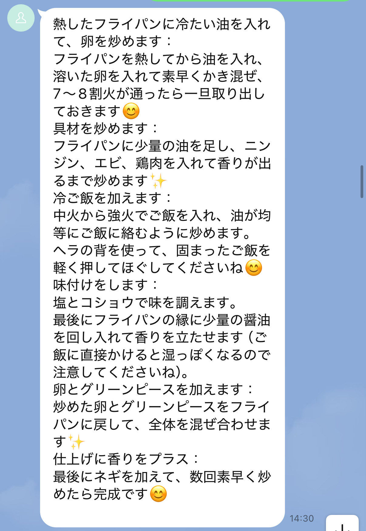 ▼写真付きで作った炒飯を送ってきてくれるほどのチャーハンマスター