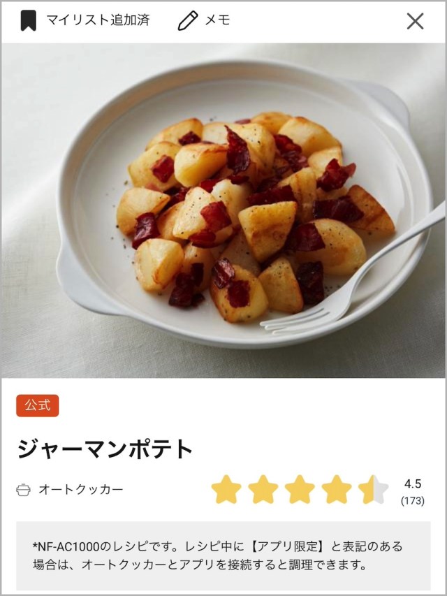 減塩醤油を使っているせいか、ちょっと塩気が薄かったのはご愛嬌。しかしこのスマホアプリ、メモ機能がついており、未来の自分に向けて「醤油多め」などの自分用メモを残せる。また、みんなのメモが公開されているので「うちはこんな風にアレンジしたよ」などの人類の英知が集約されている。助かるー!!