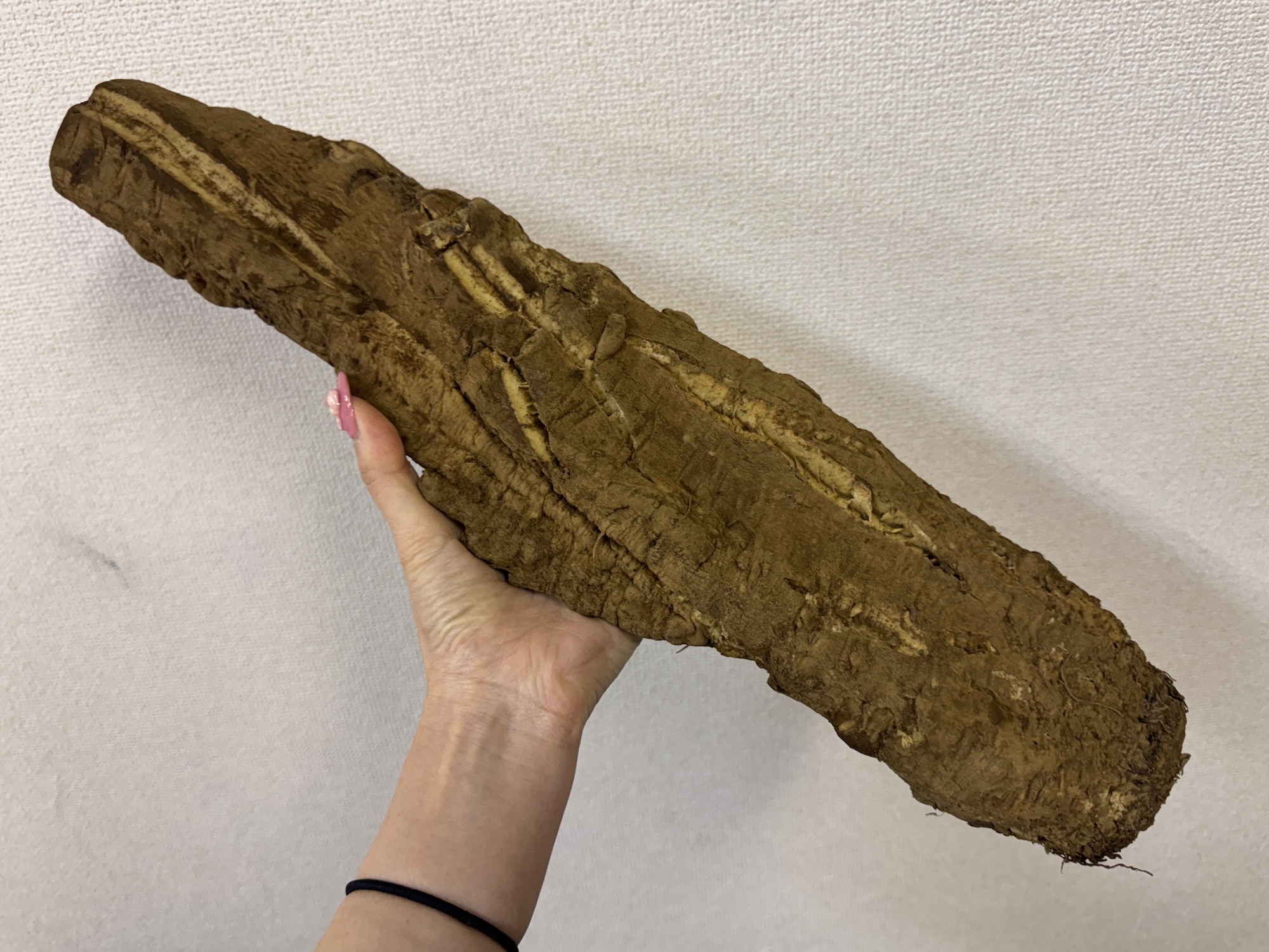 残留した土やらを落としたらますますフランスパンみを帯びた大浦ゴボウ。このサイズ感で価格は衝撃の税込539円。ヨーカドーのゴボウが1本約100円であることを考えると、これは “ゴボウ革命” と呼んで差し支えないのではないか?