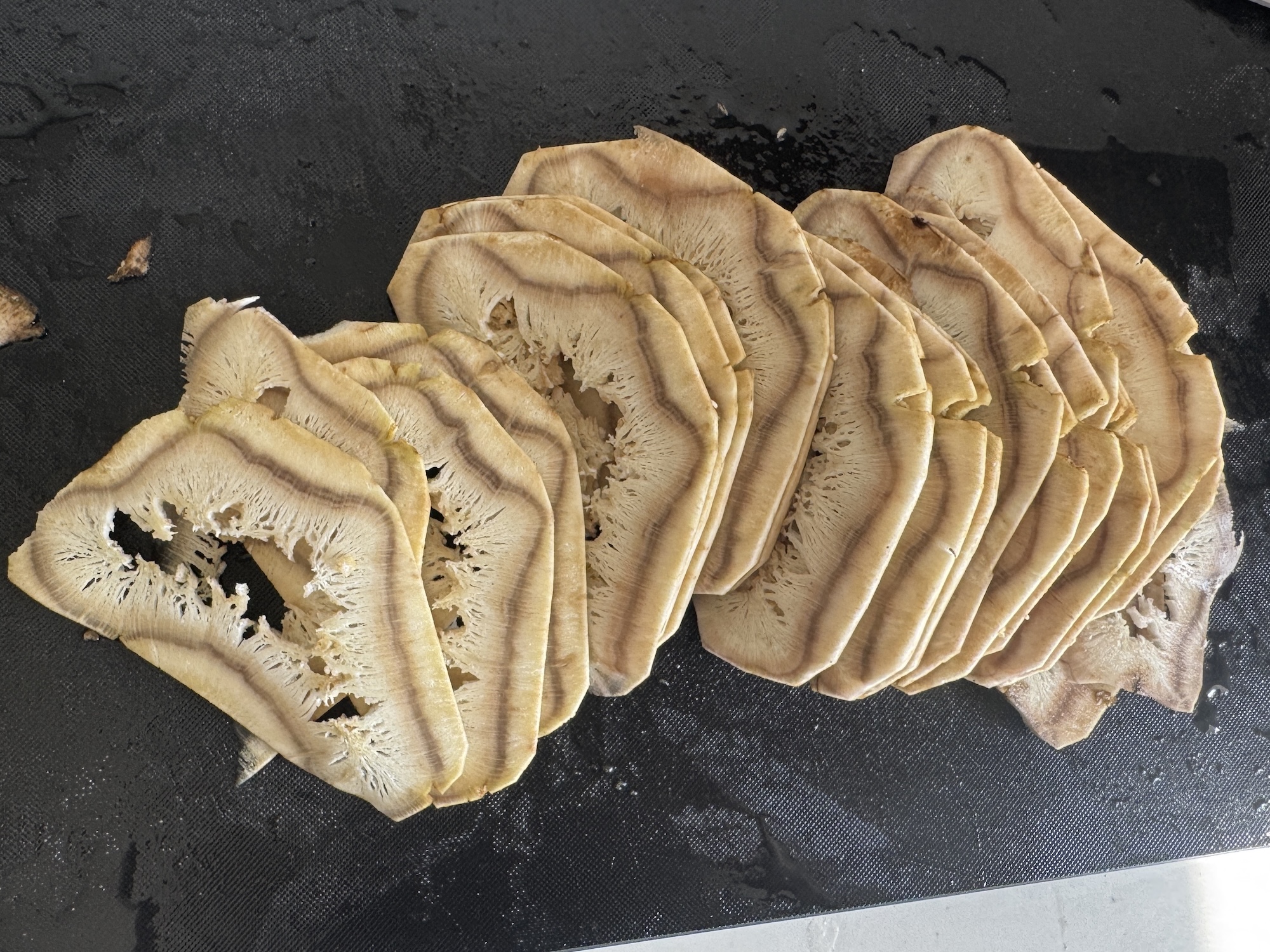 こちらも個体差があるのかもしれないので「大浦ゴボウはこういうもの」と断じることはできないけども、少なくとも今回購入した個体は中心部にポッカリ空洞があり、周辺は鍾乳洞みたいにスカスカとしていた。