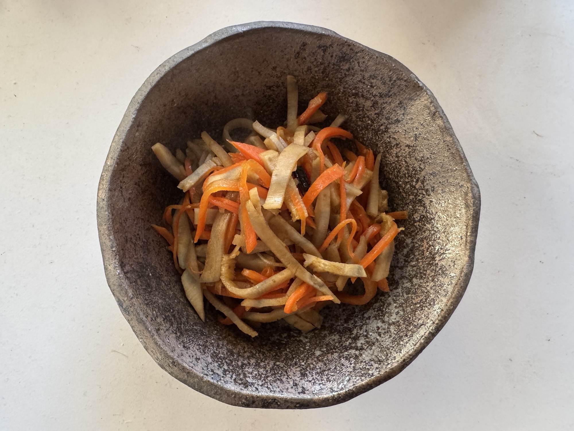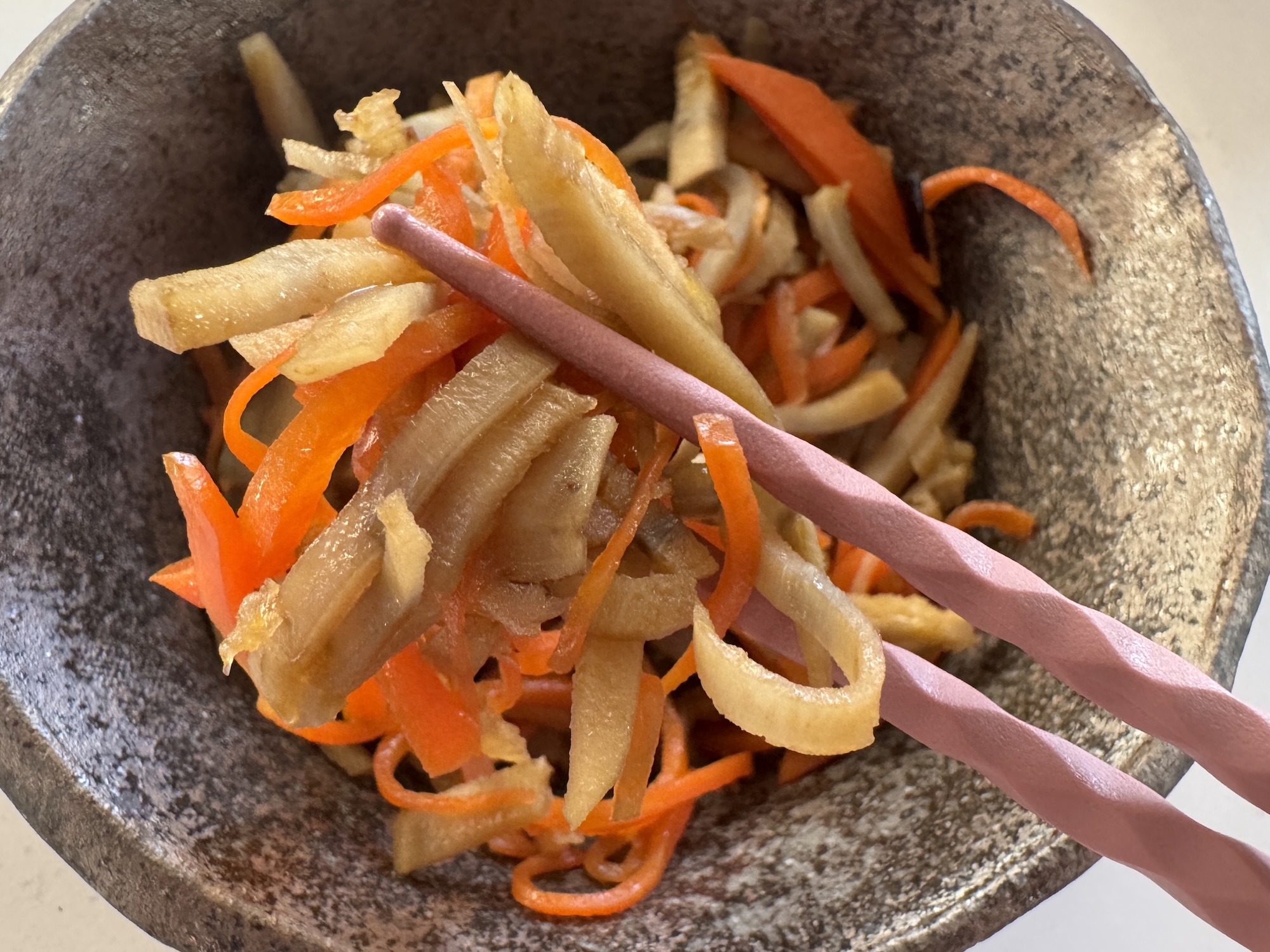 後から調べたところ、大浦ゴボウは「煮物に最適!」かつ「きんぴらにしてもOK」とのことであった。ノーマルゴボウきんぴらより若干フニャッとした感じ。