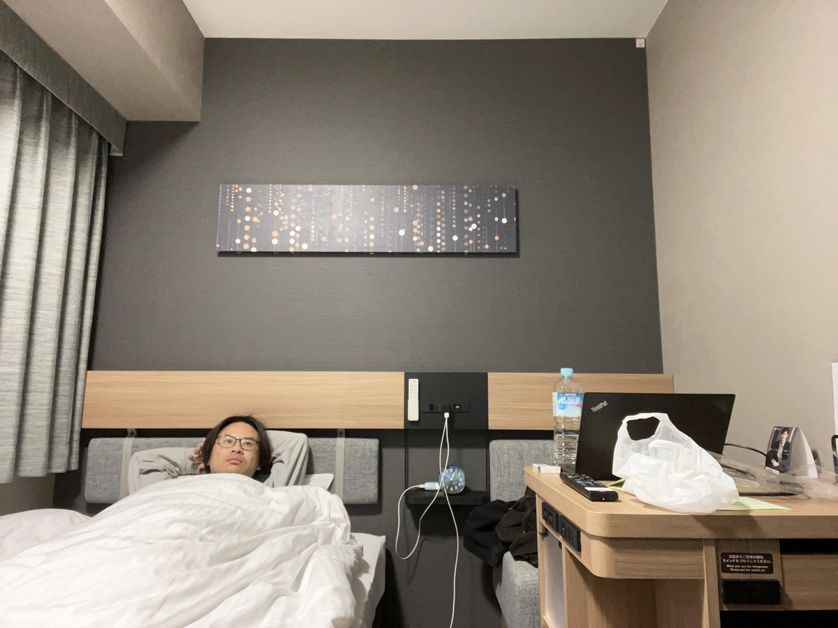 正直、ツアー中の部屋は狭い方が落ち着く性分なので十分だった。喫煙室やコインランドリーもあって、ツアーの宿泊に使い勝手が良いビジネスホテルと言えるだろう。