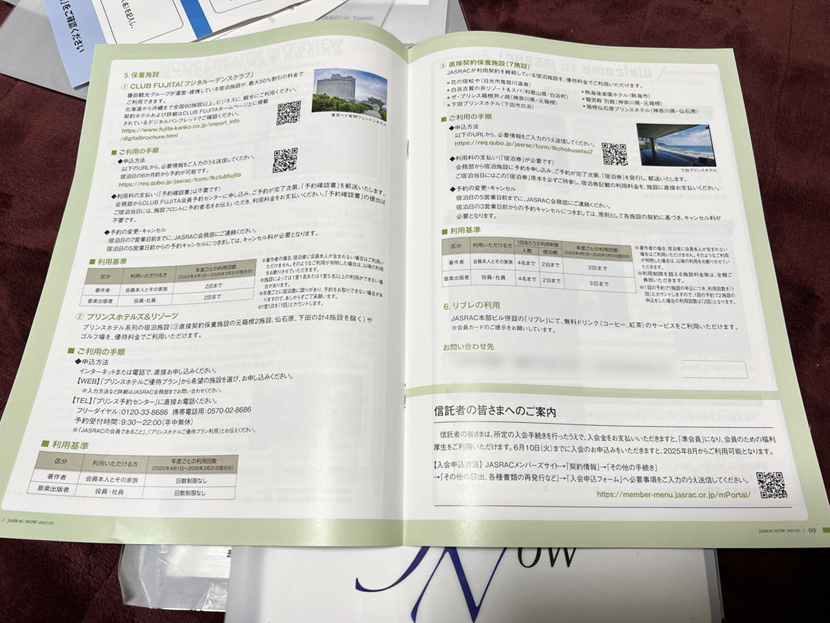 私が保養施設の存在を知ったのは、JASRAC会員に送られてくる月刊誌『JASRAC NOW』だ。内容的には、なんか凄い先生がドエライ賞を受賞しましたよということが書かれているようなマジでお堅い情報誌なので、私に関係なさすぎて読み飛ばしまくっていたけど、その中にこっそり会員だけが使える保養施設の記載があったのである。