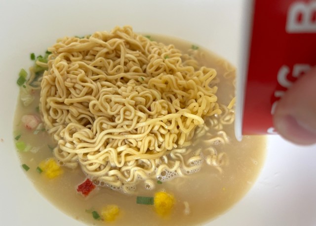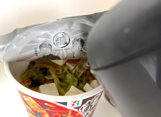 ここで1つ工夫がある。蒙古タンメン中本は122gとボリュームがあるため、普通サイズのシーフードヌードル(75g)だと量の比率が悪くなる。そこで今回はシーフードヌードルのBIGサイズを選んだ次第だ。