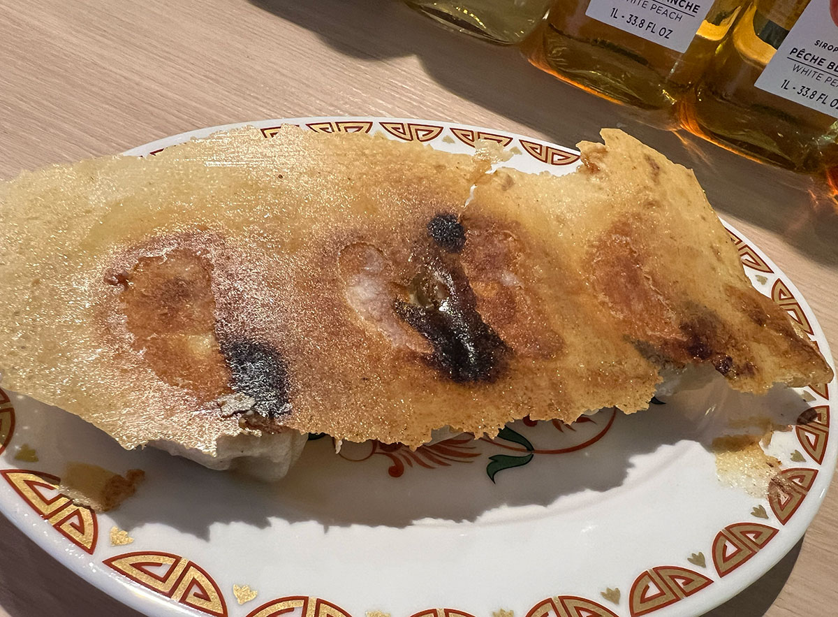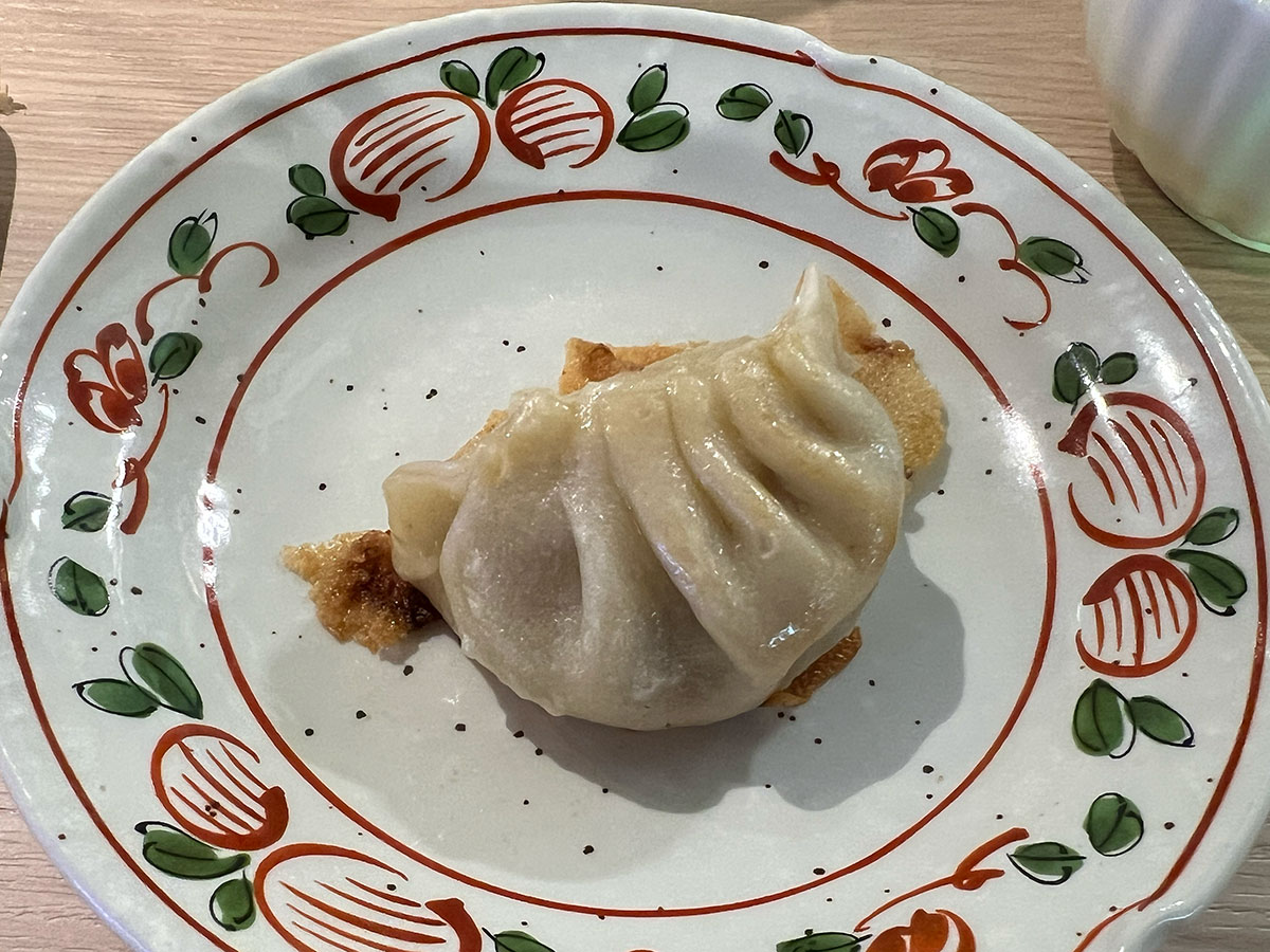 ▼ひっくり返すとこんな感じ。たしかに、手作り感あふれる餃子であった