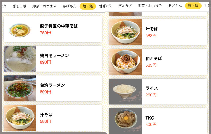 ついでに言うと、チャーハンも夜は提供していない。ご飯ものは0ではないものの、ノーマルの大阪王将店舗に比べたらめちゃくちゃ少ない。