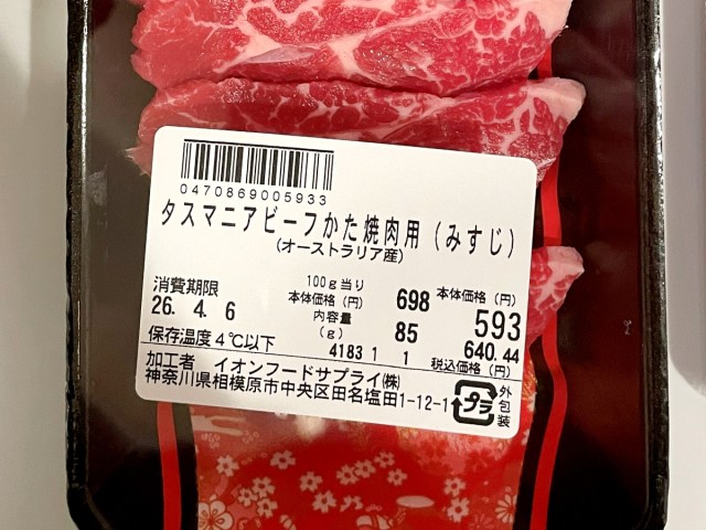 それでは実際に肉を焼いていきたい。今回は比較のため、外国産の安いみすじ肉と、ちょっと高い黒毛和牛のロースを買ってきた。
