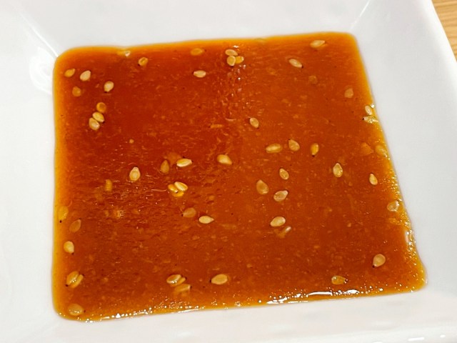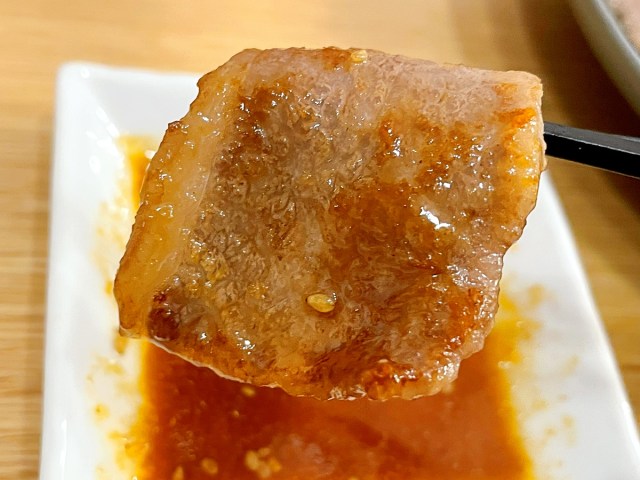 味見した時はドロッと濃厚で甘辛な、よくある市販の焼肉のタレという印象を抱いたが、肉と一緒によく味わうと濃いように見えて実はさらっとしており、そして何より、後味がとにかくドライだ。