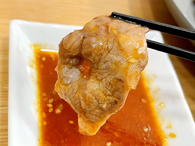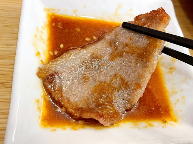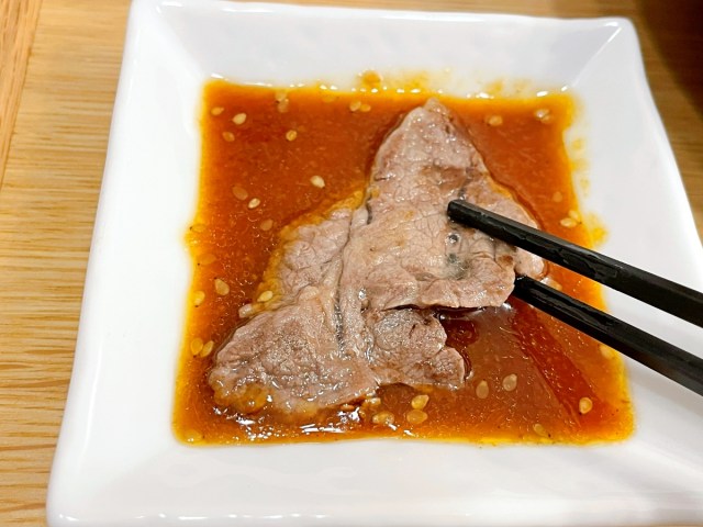 さて、焼肉の前に、まずはタレの水質調査から始めよう。軽くなめてみると……か、辛い!