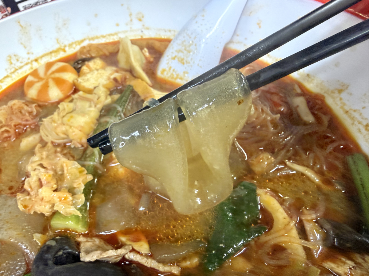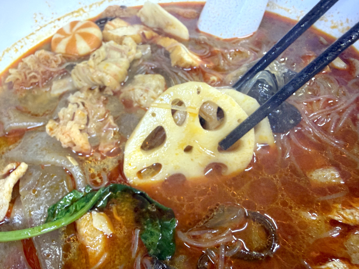 さっそく食べてみるとソリッド系のキレがある麻辣湯で、余裕でウマい! お願いした辛さ3はそれなりの辛さなので、初見は2くらいで様子見をした方がいいかもしれない。