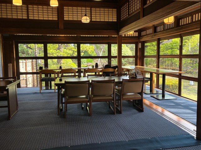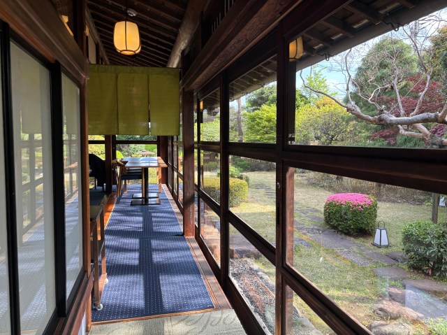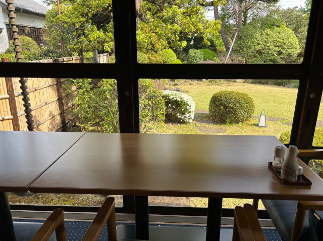 このときはたまたま私しかいなかったので、食事をしながら窓際から庭が眺められる良席に座ることができた。