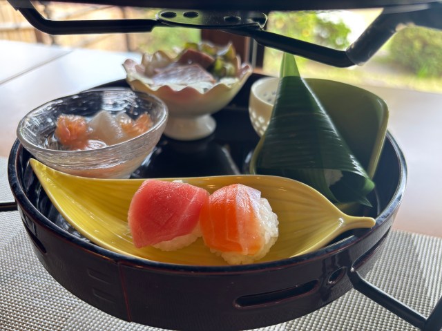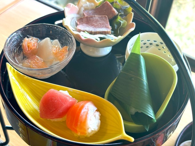 個人的には小さい手毬ずしと、笹ずしがついてきたのが嬉しかった(妊娠中だけど、少しくらいなら許してくださいと祈りながら食べました)。
