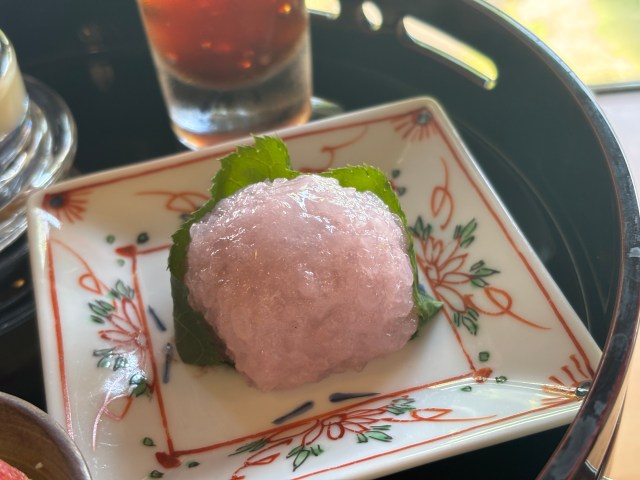 ・豆乳ゼリー桜の葉添え